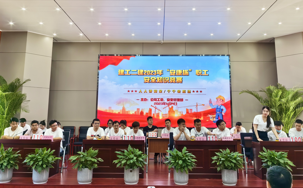 今年六月是第22個全國“安全生產(chǎn)月”,主題為“人人講安全,個個會應(yīng)急”。6月9日上午,公司工會牽頭,與安全管理部聯(lián)合舉辦了建工二建2023年“安康杯”職工安全生產(chǎn)知識競賽活動。安全知識競賽的開展,旨在通過以賽促學(xué)、以學(xué)促用,大力弘揚“生命至上、安全為天”的安全理念,加強(qiáng)安全知識宣傳教育,切實增強(qiáng)廣大職工安全生產(chǎn)意識和安全管理知識水平。公司黨委副書記、工會主席王軍,副總經(jīng)理代鵬飛出席活動。