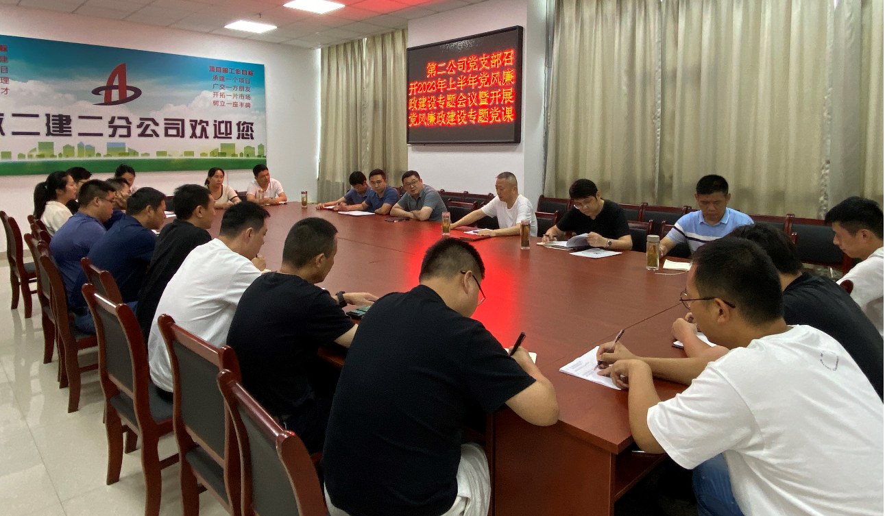7月7日下午,第二公司黨支部召開2023年上半年黨風廉政建設專題會議暨開展黨風廉政建設專題黨課活動。會議由黨支部書記黃業(yè)云主持,第二公司黨支部在肥黨員、機關中層管理人員等參加會議。