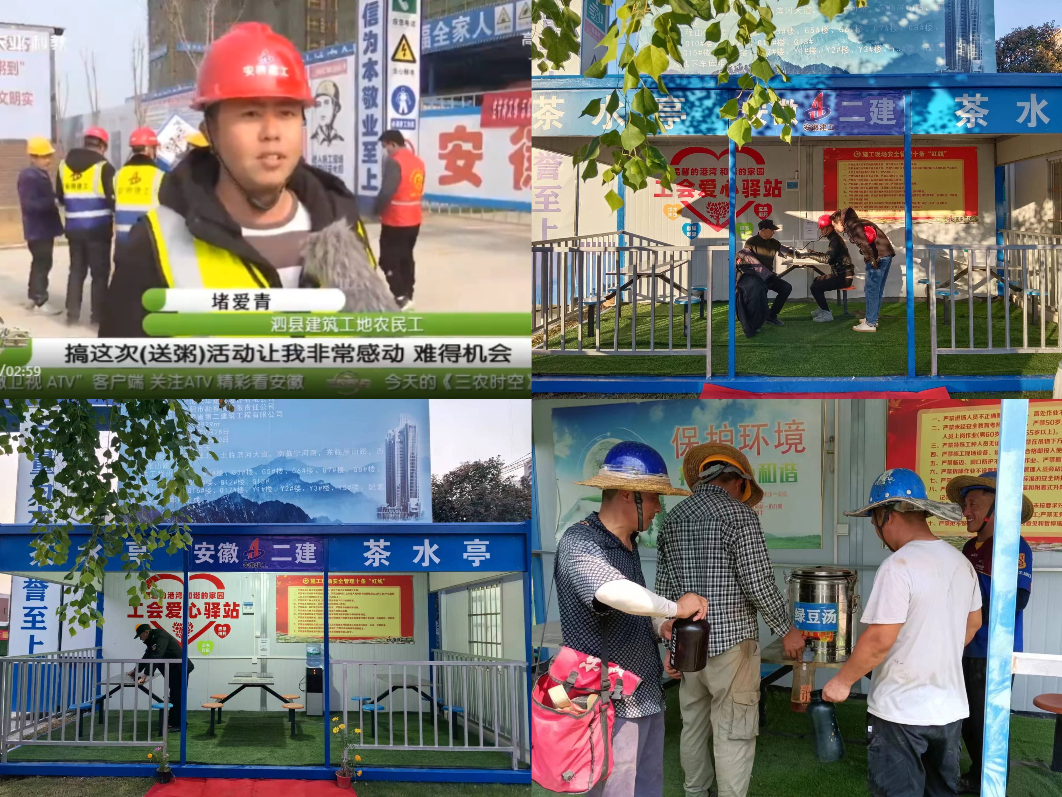 泗縣多金城項(xiàng)目“工會(huì)驛站”建設(shè)面積約40平方米,自開工以來,為方便一線工友就餐、休息,設(shè)立了茶水亭、休息室等“工會(huì)驛站”,并配備了純凈水、防暑降溫和外傷應(yīng)急藥品、血壓測(cè)量?jī)x、充電設(shè)施、免費(fèi)WiFi、閱讀室等。通過定期組織免費(fèi)體檢、防暑降溫藥品和飲品發(fā)放、“臘八節(jié)”送粥等公益服務(wù)活動(dòng),為一線員工提供了一個(gè)溫馨的休憩港灣。