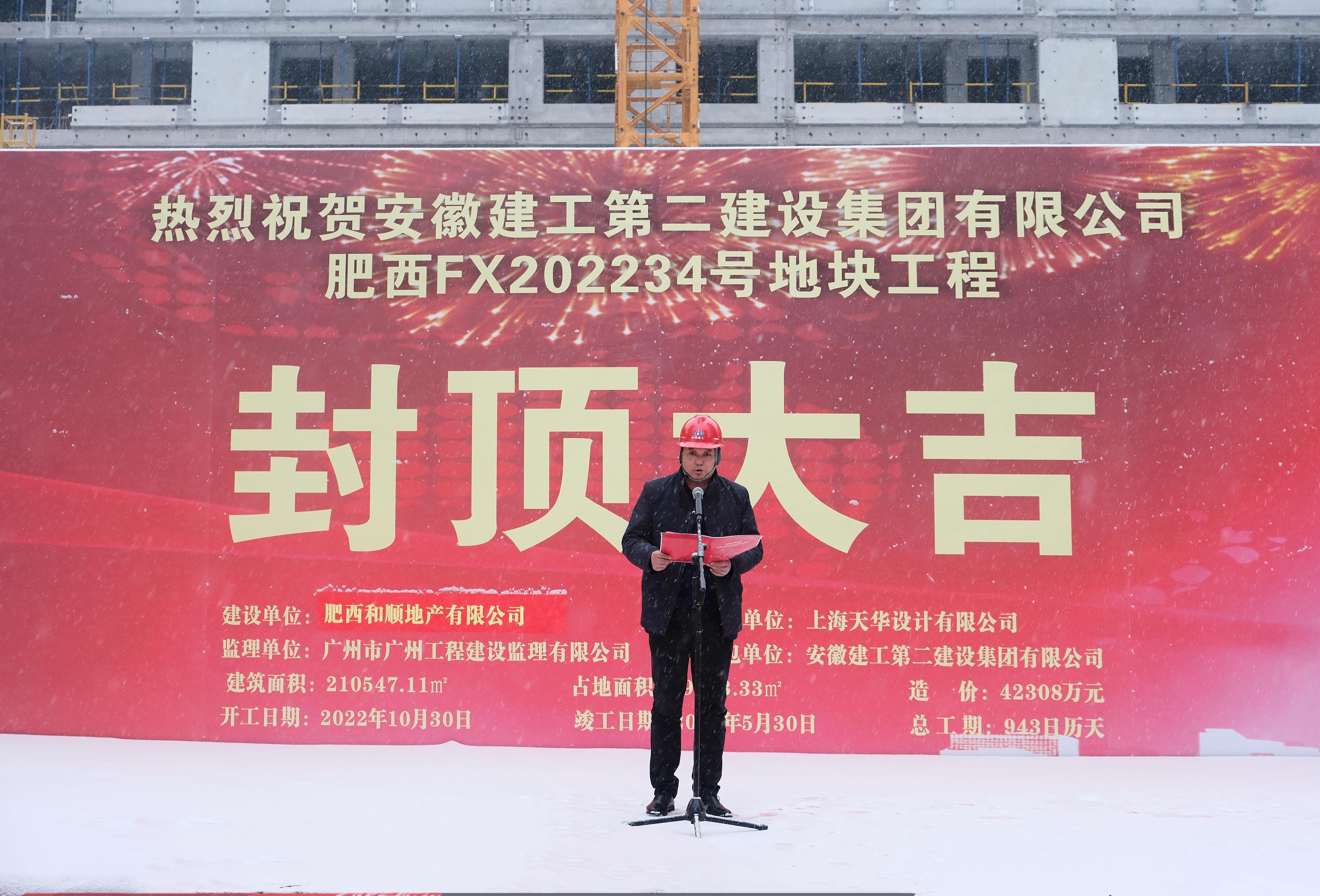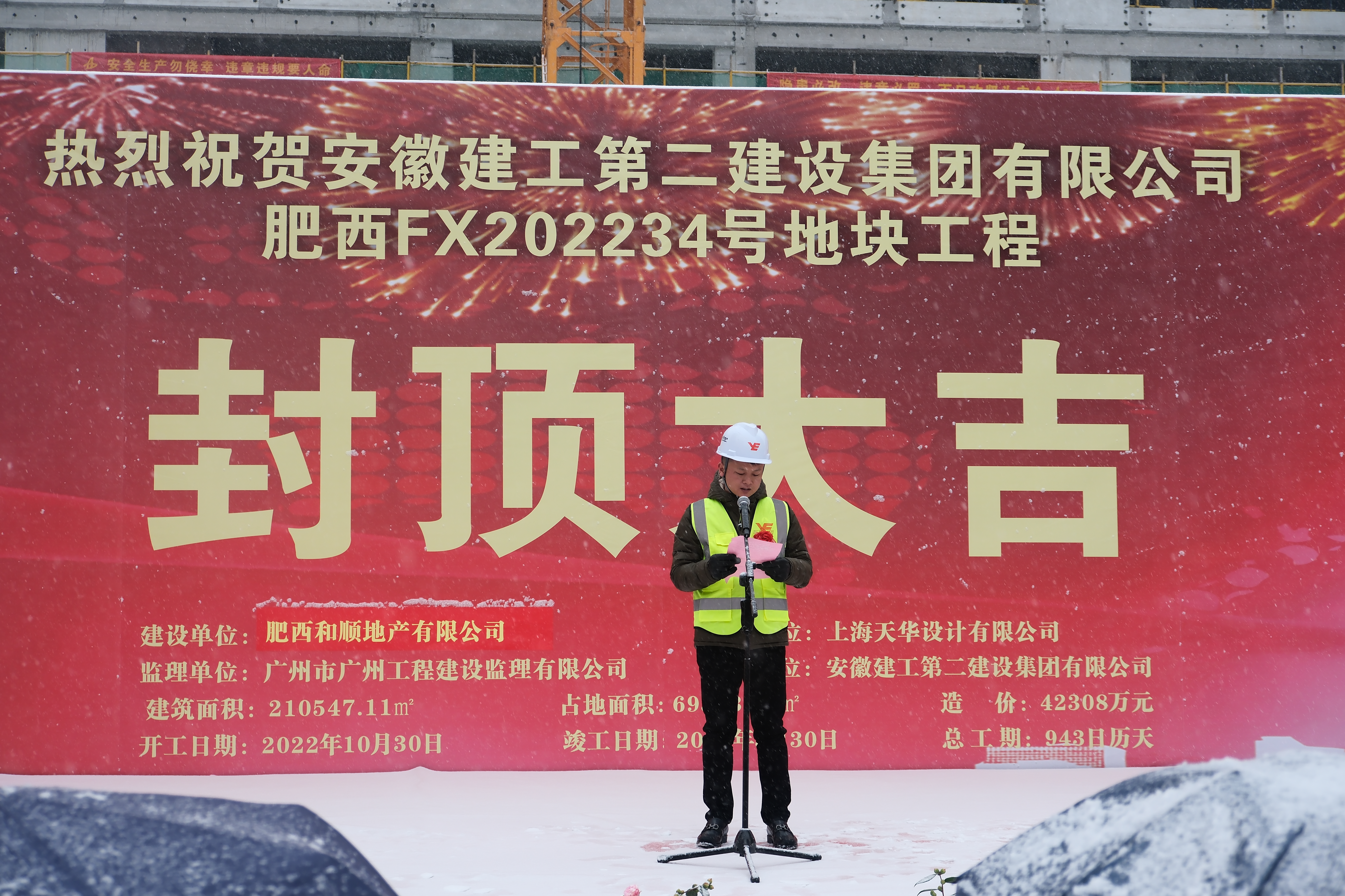 李登祥就項(xiàng)目建設(shè)情況做了簡要介紹,他表示:和悅云錦項(xiàng)目是安徽建工集團(tuán)首次與央企合作的地產(chǎn)項(xiàng)目,是肥西縣滿分競品的高端住宅項(xiàng)目。建設(shè)過程中,我們克服了種種困境,在各方的關(guān)心支持下,與各參建單位通力協(xié)作,奮力拼搏,有力地保證了整個工程建設(shè)的穩(wěn)步推進(jìn),確保了洋房主體工程如期順利封頂。我們將以洋房主體封頂為標(biāo)志,再接再厲,繼續(xù)與保利、越秀、和順地產(chǎn)精誠合作,以飽滿的熱情、周密的組織、優(yōu)質(zhì)的服務(wù)確保工程進(jìn)度和工程質(zhì)量,如期為業(yè)主奉獻(xiàn)美好家園,打造“優(yōu)質(zhì)工程、平安工程、綠色工程、廉潔工程”,打造央地國企合作示范新標(biāo)桿。