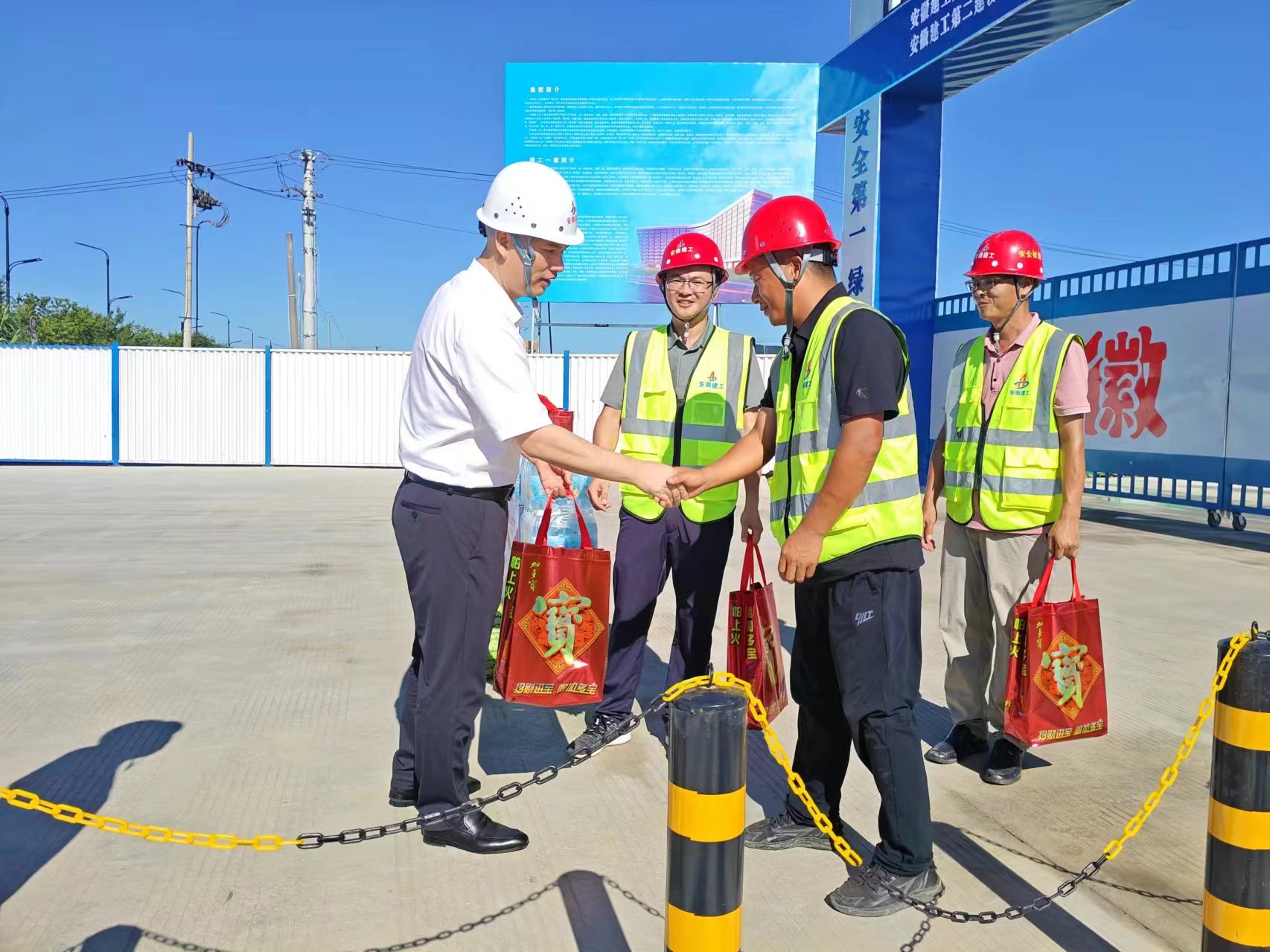 在項目現(xiàn)場,朱忠明詳細了解項目整體建設進度,認真檢查項目安全生產措施落實及人員工作生活保障情況,親切看望慰問一線建設者并送上防暑降溫用品,叮囑大家做好防暑降溫,注意勞逸結合,加強防護,確保自身安全和健康。