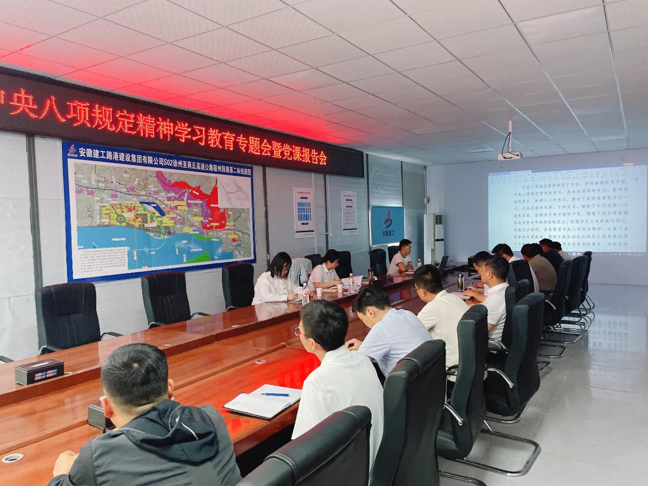 建工宿州投發(fā)公司機關黨支部書記徐晶晶一行赴項目部開展深入貫徹中央八項規(guī)定精神學習教育專題會暨黨課報告會