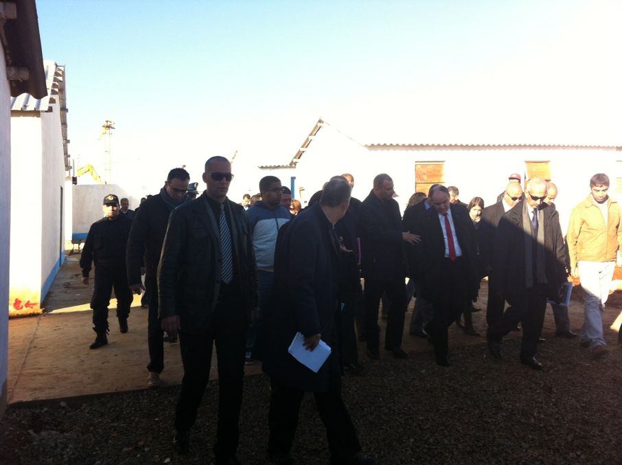 2013年12月10日,阿爾及利亞奧蘭省新任省長阿布戴勒卡尼•扎蘭一行在當?shù)貥I(yè)主及中鐵十九局相關(guān)領(lǐng)導(dǎo)的陪同下,親臨安徽二建承建的本弗黑哈和布特來力斯鎮(zhèn)600套住房工程現(xiàn)場,對工程前期砼攪拌站建站、臨設(shè)搭建、場地平整等工作給予了肯定,并要求依據(jù)合同、施工圖、規(guī)范等確保工程質(zhì)量,加快施工進度,做好安全文明施工。