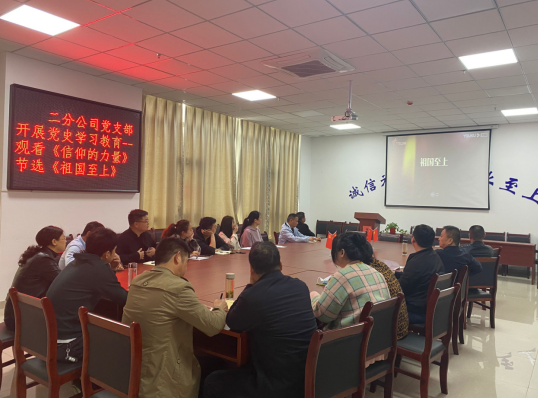 為認(rèn)真貫徹落實(shí)習(xí)近平總書(shū)記在中央黨史學(xué)習(xí)教育動(dòng)員大會(huì)上的重要講話精神,進(jìn)一步深入貫徹公司黨委關(guān)于開(kāi)展黨史學(xué)習(xí)教育的文件精神。二分公司黨支部開(kāi)展黨史學(xué)習(xí)教育活動(dòng),組織黨員和干部職工觀看電影《長(zhǎng)征》及紀(jì)錄片《信仰的力量》節(jié)選《祖國(guó)至上》。