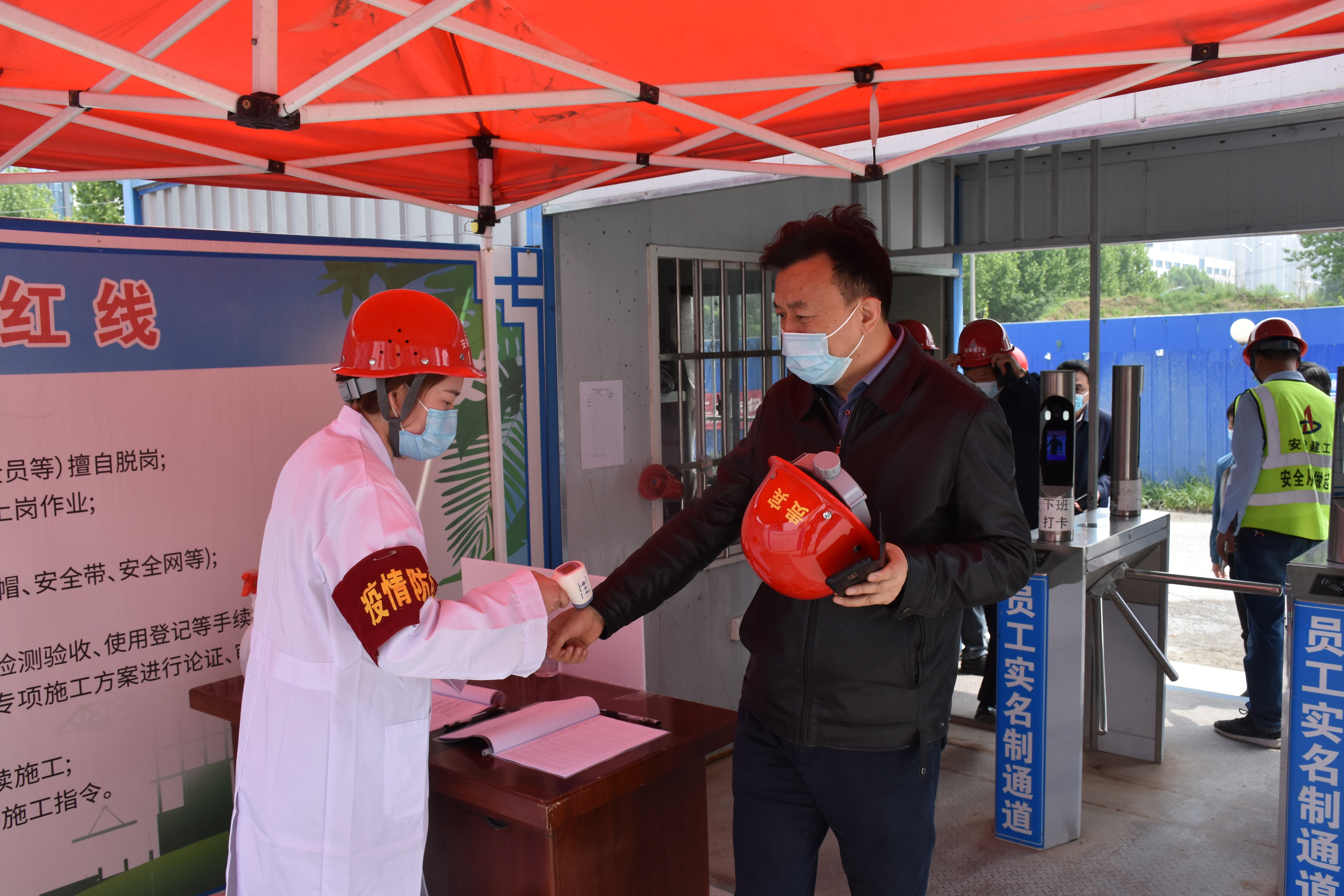 王汪苗現(xiàn)場(chǎng)督導(dǎo)檢查項(xiàng)目部的施工現(xiàn)場(chǎng)、辦公區(qū)域、食堂、生活區(qū)情況,詳細(xì)了解項(xiàng)目部疫情防控工作部署、落實(shí)集團(tuán)及屬地工作要求、常態(tài)化疫情防控措施及防疫物資儲(chǔ)備等有關(guān)重點(diǎn)工作。在聽取項(xiàng)目部關(guān)于當(dāng)前生產(chǎn)及疫情防控工作的匯報(bào)后,王汪苗對(duì)項(xiàng)目工作給予肯定,并指出,文一春風(fēng)里項(xiàng)目作為二建首個(gè)超高層工程,在抓好履約工期及安全生產(chǎn)的同時(shí)必須嚴(yán)把防疫關(guān),確保廣大職工生命健康安全。