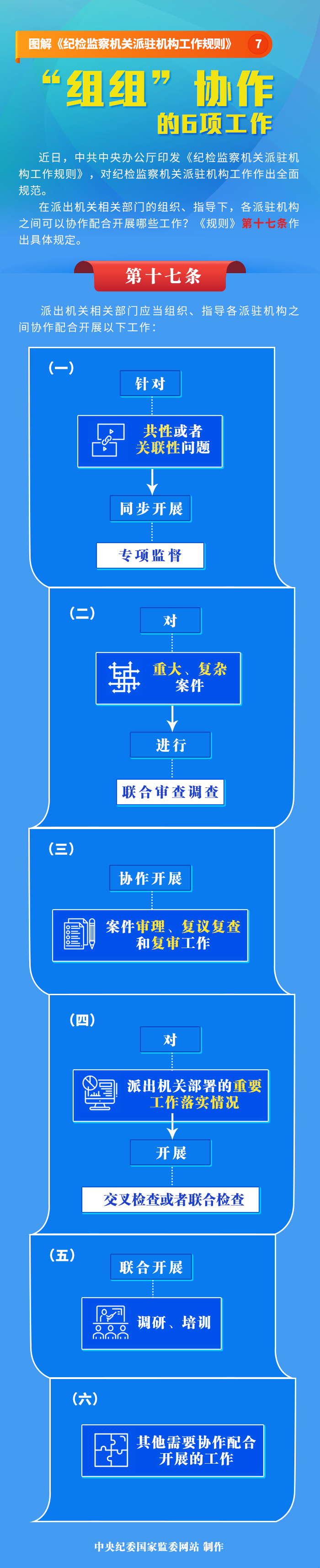 第十七條 派出機關(guān)相關(guān)部門應(yīng)當(dāng)組織、指導(dǎo)各派駐機構(gòu)之間協(xié)作配合開展以下工作: